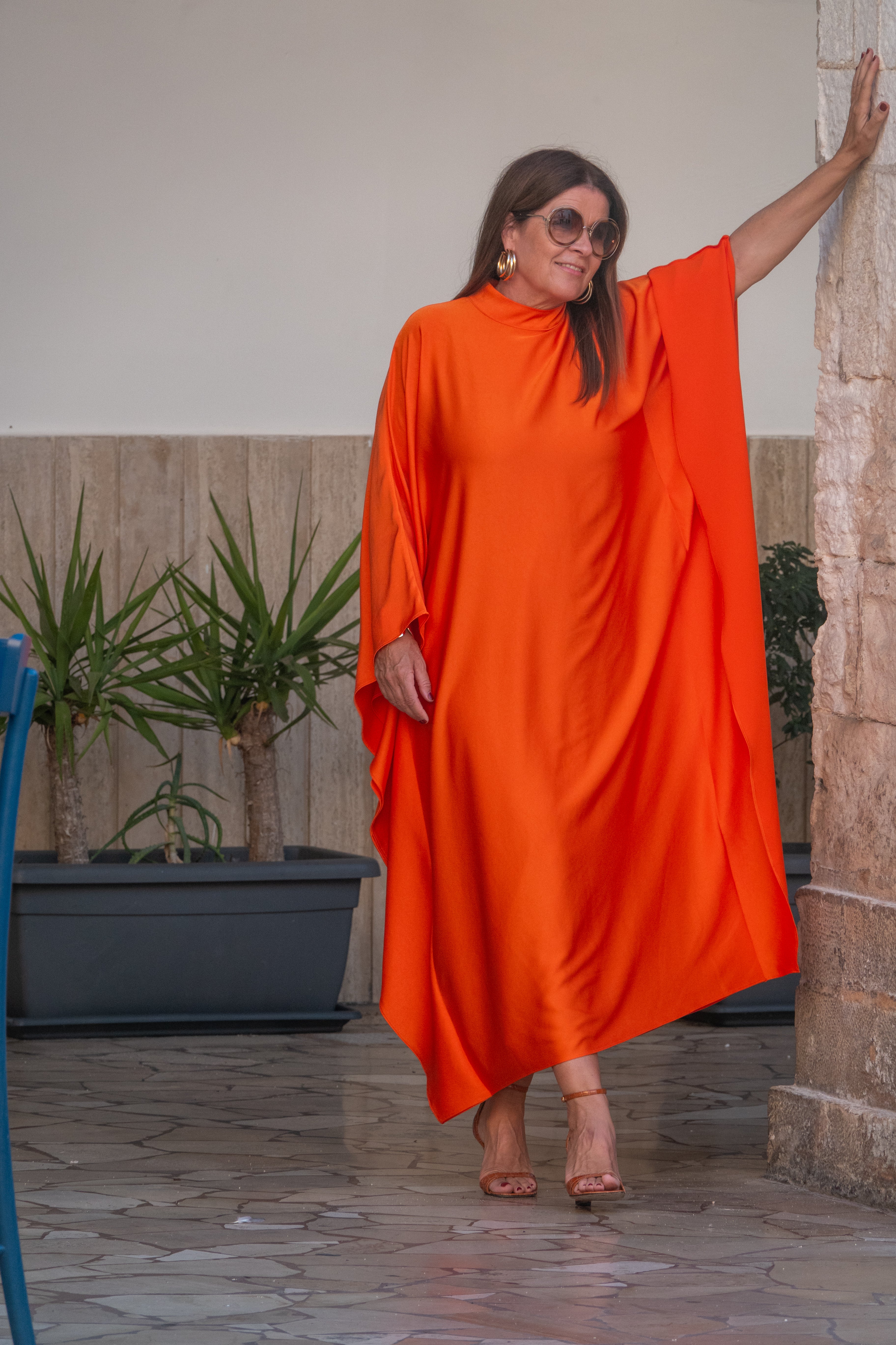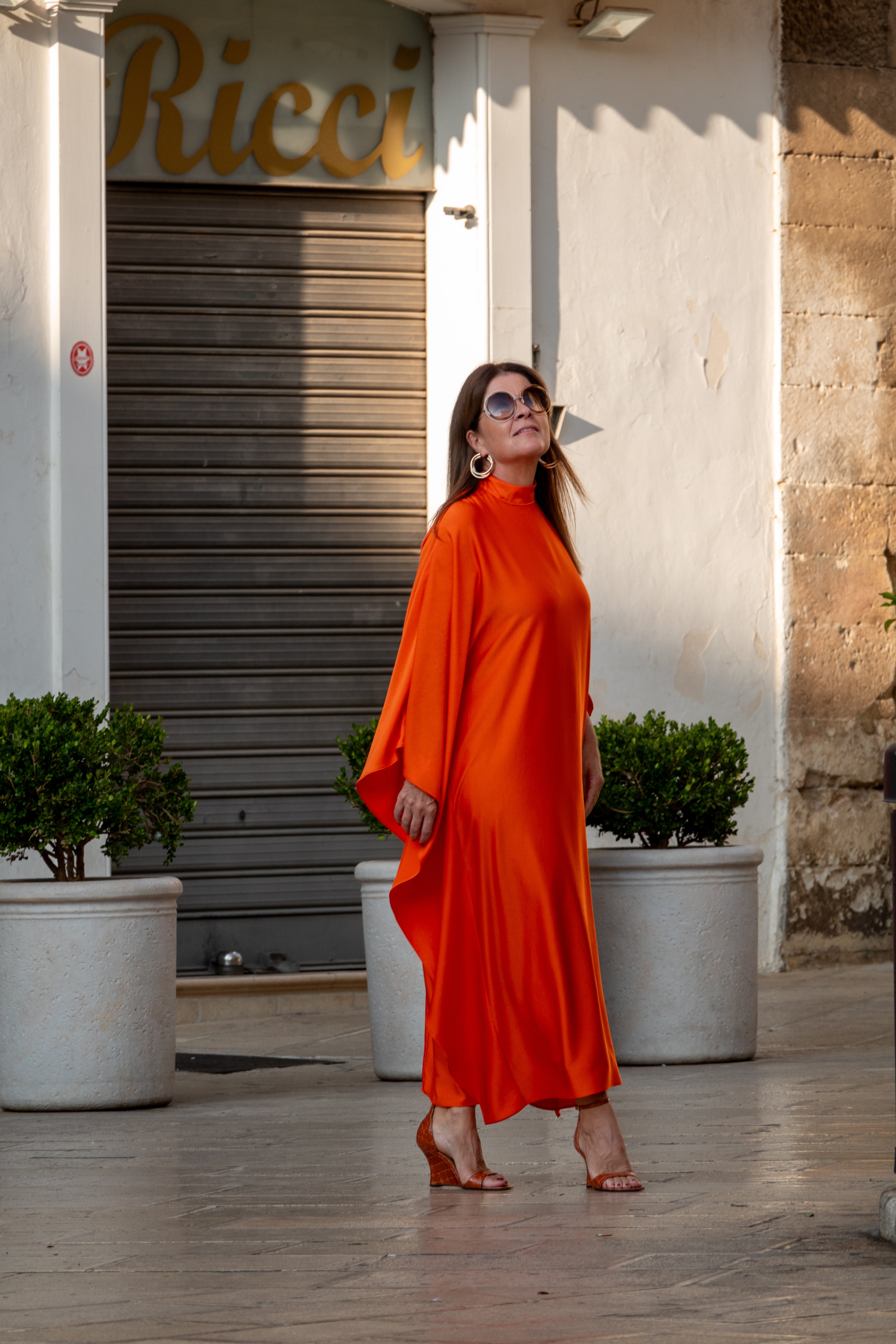 If you are looking for a typical statement piece of clothing, this dress with high collar is just right.